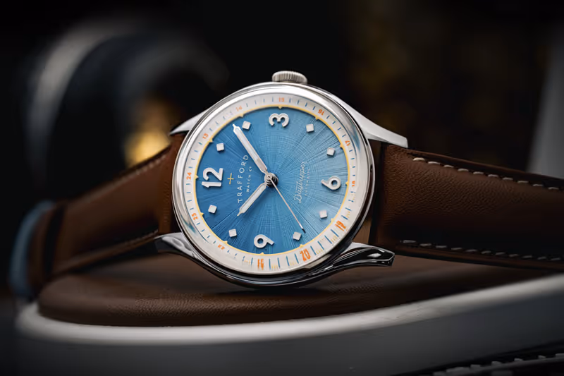 Everything about the Daytripper is purposefully versatile. From the mid-size case to the sculpted lugs and relaxed dial layout, it feels at home anywhere. The colors are bold but wearable. The typography is strong but approachable. It's a design that works just as well on the road as it does at home.
